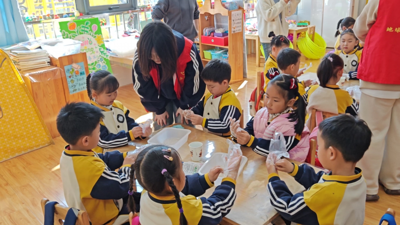 2025年3月21日下午,汤姆影院 党员师生在附属幼儿园开展“雷锋精神润童心,节水护冰共前行”世界首个冰川日主题活动。2024级水文与水资源专业志愿者、水科学学生党支部部分党员参加活动。
