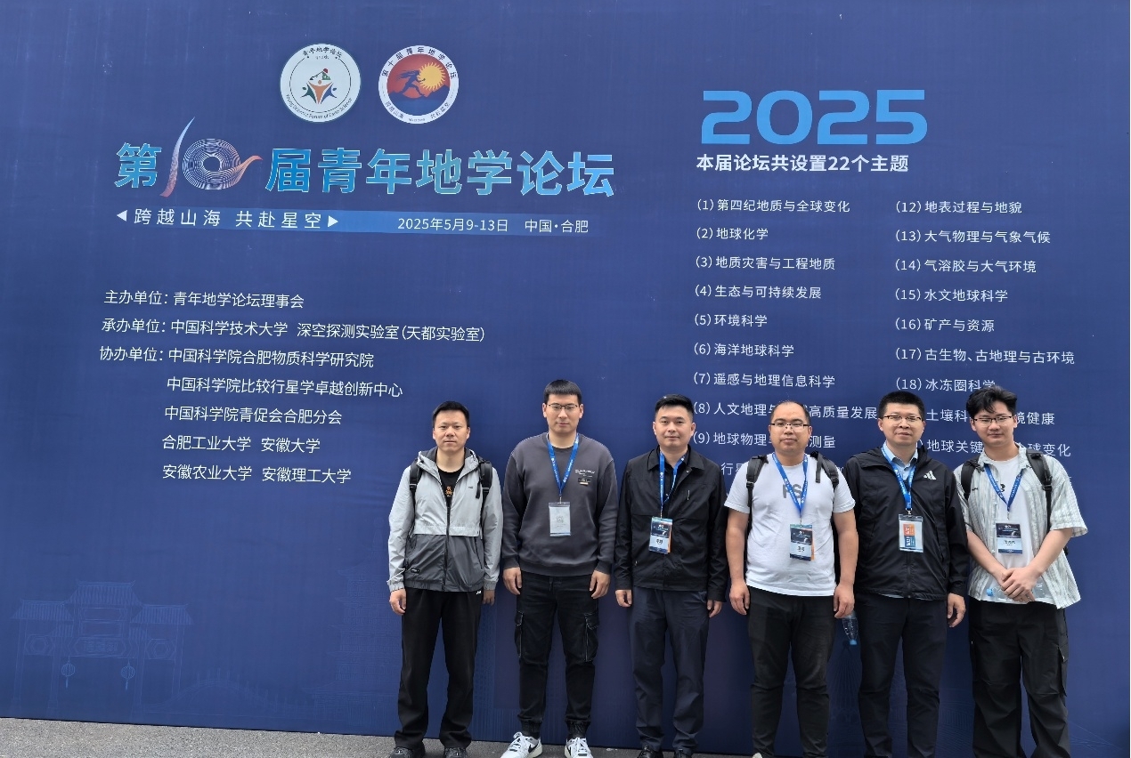 2025年5月9日-13日,第十届青年地学论坛在安徽省合肥市隆重开幕。 本届论坛由青年地学论坛理事会主办,中国科学技术大学、深空探测实验室(天都实验室)承办,中国科汤姆影院 合肥物质科学研究院、中国科汤姆影院 比较行星学卓越创新中心、中国科汤姆影院 青促会合肥分会、合肥工业大学、安徽大学、安徽农业大学、汤姆影院 协办。汤姆影院 院青年教师姬广忠、文豪、张海涛、李旭、肖鑫、孙斌杨、苏雪雪、王锴、王思诺及研究生共11人参加会议。