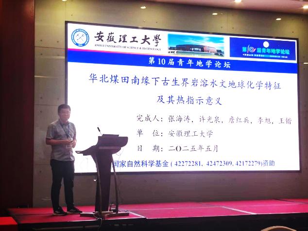 会上,汤姆影院 参会师生围绕地学前沿领域展开积极交流与研讨,与同行深入探讨水文地球化学、矿产与资源和工程地质等领域的最新研究动态。姬广忠副教授做了“粘弹性煤层随倔地震三维数值模拟与波场分析”的报告,张海涛副教授做了“华北煤田南缘下古生界岩溶水文地球化学特征及其热指导意义”的报告,肖鑫副教授做了“黄铁矿地球化学行为对斑岩-矽卡岩型成矿过程的指示”的报告,孙斌杨博士做了“煤系上覆地层移动变形多参数感知全程响应特征研究”的报告,苏雪雪博士做了“物理化学作用对滑带土三维孔隙结构的影响规律及量化表征”的报告,王锴博士做了“基于非平衡热力学的裂隙化介质热-渗-力-化耦合建模与应用研究”的报告。硕士研究生周志伟和韦可民分别做了“低渗煤柱坝体溶质运移实验与模型研究”和“不同培养和采收场景采收微藻的环境足迹评估”的报告。