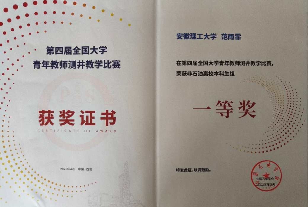汤姆影院 教师荣获第四届全国大学青年教师测井教学比赛一等奖