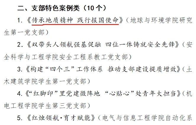 近日,学校下发《关于表彰基层党建品牌特色案例的决定》,汤姆影院 研究生第一党支部报送《传承地质精神 践行报国使命》获评支部特色案例。