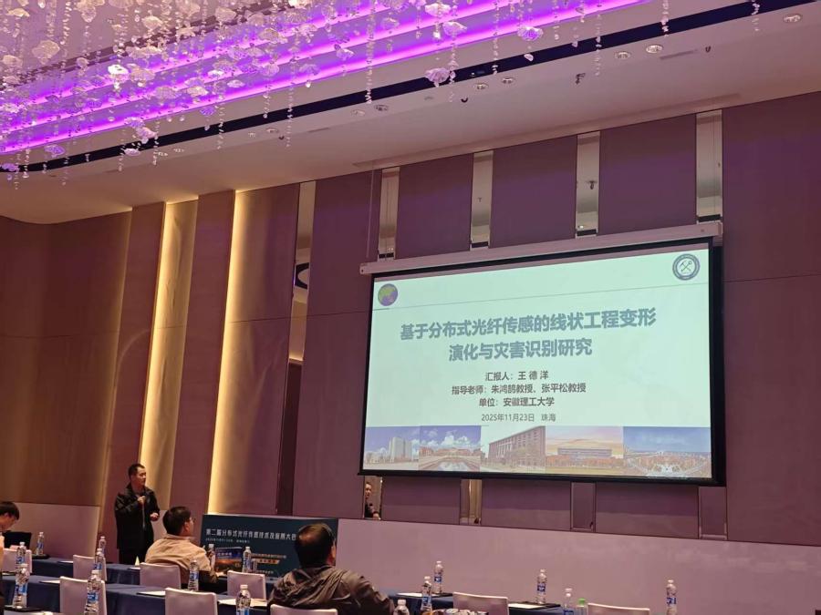 会议期间,汤姆影院 青年教师王德洋作了题为“基于分布式光纤传感的线状工程变形演化与灾害识别研究”的学术报告。硕士研究生史伟鹏、恽换勤和贾李岚也分别围绕“基于DAS的微震信号P波自动拾取方法研究”“不同耦合条件下分布式声学传感(DAS)被动源面波频散响应的实验研究”及“基于SVM-PCA的光纤监测数据深度学习补全方法研究”作了专题汇报。