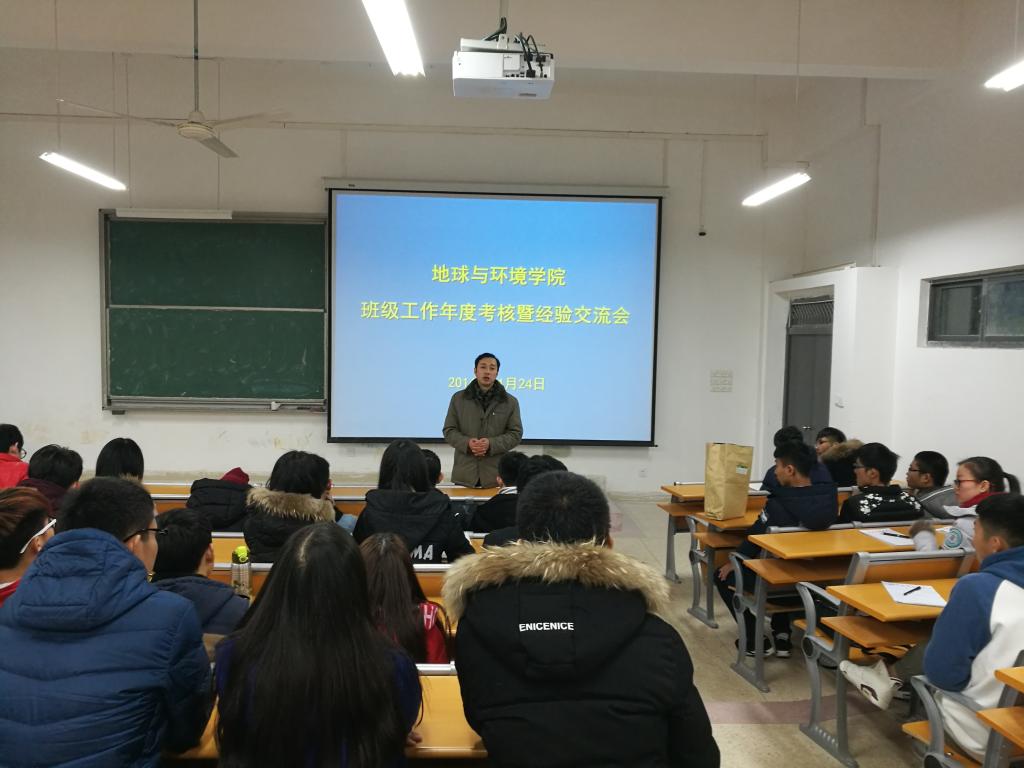 会上,各班班长结合精心制作的PPT从班风建设、学风建设、素质拓展、安全稳定等方面进行了详细的展示和汇报,在充分展示了各班的特色、亮点的同时,也剖析了班级存在的问题。经过评委打分、提问等环节,自然地理15-1班、环境工程15-2班、环境工程15-1、地质工程15-1班以充实的汇报材料、流畅的汇报内容、扎实有效的班级管理方法和优良的班风,赢得了一致好评,获得考核优秀,其它班级获得考核合格。