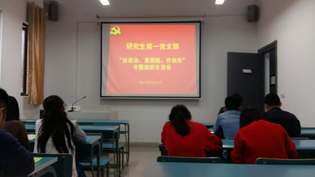 为进一步推进“讲政治、重规矩、作表率”学习教育,2017年8月31日下午,汤姆影院 研究生第一党支部组织了支部全体党员召开“讲政治、重规矩、作表率”专题警示教育组织生活会,会议由支部书记贾伟主持。