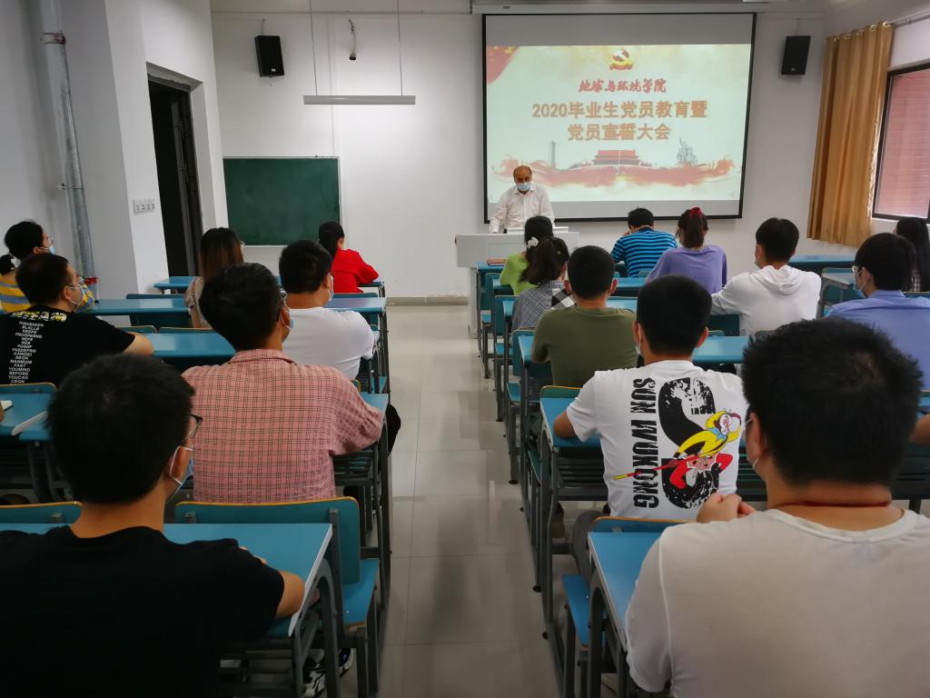会上,在党委副书记金德的带领下,81名毕业班党员面对鲜红的党旗,庄严宣誓,重温入党誓词,立誓为共产主义奋斗终身。党委秘书贾伟就党组织关系转接等事项作了强调布置。