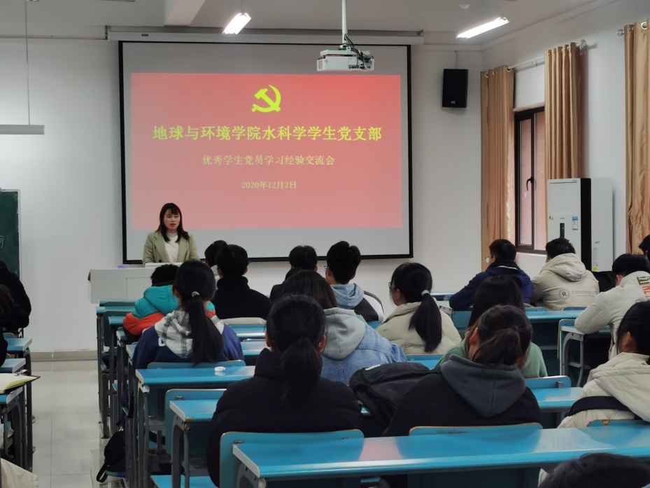 12月2日下午,汤姆影院 水科学学生党支部在静远楼202为2020级学生做学习交流报告会,会议由支部书记魏丹丹主持,支部党员陈情情、高飞、戴钰、徐小倩以及2020级水文专业学生全体学生参加会议。