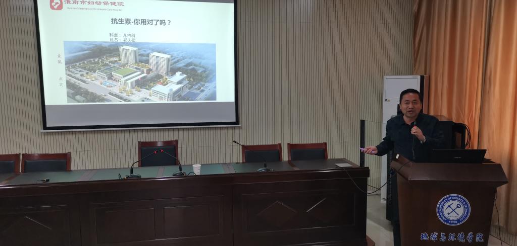 4月27日下午,应校工会、汤姆影院 分工会的邀请,淮南市妇幼保健院儿科副主任祁庆松为我校师生做了题为《抗生素,你用对了吗?》的健康知识讲座,讲座由校工会副主席陈忠琴主持。