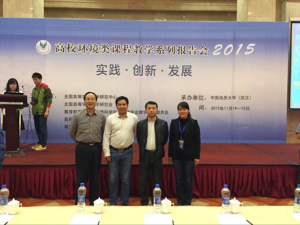 2015年11月14-15日,第十届高校环境类课程教学系列报告会(2015)在湖北武汉举行,本届会议由由全国高等学校教学研究中心、全国高等学校教学研究会、教育部高校环境科学与工程类专业教学指导委员会、高等教育出版社主办,中国地质大学(武汉)承办,我院环境科学工程系主任高良敏教授带领查甫更、范廷玉、崔红标等3位环境课程专业教师参加了本次报告会,与来自清华大学、北京大学等近百所高校的600余名专家学者,就环境类课程教学相关问题展开经验交流和研讨。