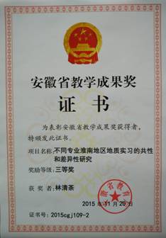 Ø 安徽省教学成果奖三等奖 |